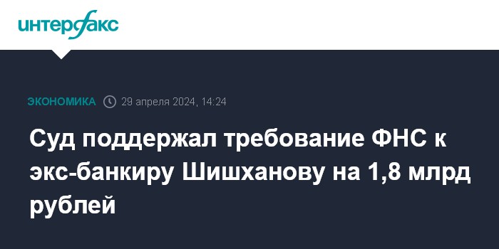 Суд поддержал требование ФНС к экс-банкиру Шишханову на 1,8 млрд рублей