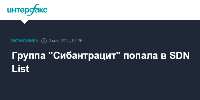 Москва. 2 мая. INTERFAX.RU - "Сибантрацит", а также добывающие активы группы 1 мая попали в SDN List.