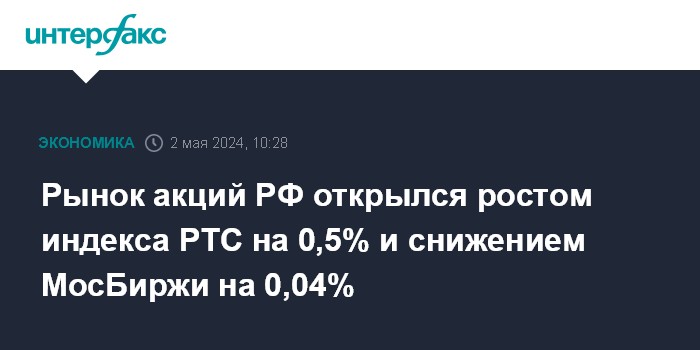 Рынок акций РФ открылся ростом индекса РТС на 0,5% и снижением МосБиржи на 0,04%