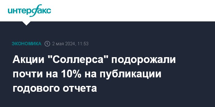 Москва. 2 мая. INTERFAX.RU - Акции "Соллерса" подорожали на "Московской бирже" почти на 10% (до 916 рублей за штуку) после публикации финансового отчета компании по МСФО за 2023 год.
