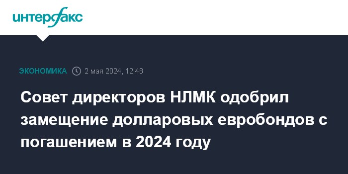 Москва. 2 мая. INTERFAX.RU - Совет директоров Новолипецкого металлургического комбината (НЛМК) одобрил замещение локальными облигациями долларовых евробондов с погашением в 2024 году, сообщила компания не ленте раскрытия информации.