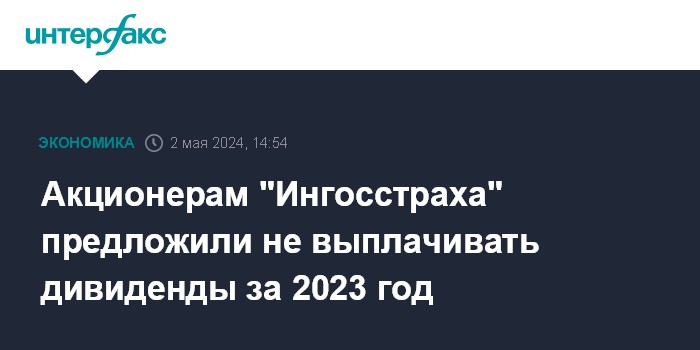 Акционерам "Ингосстраха" предложили не выплачивать дивиденды за 2023 год