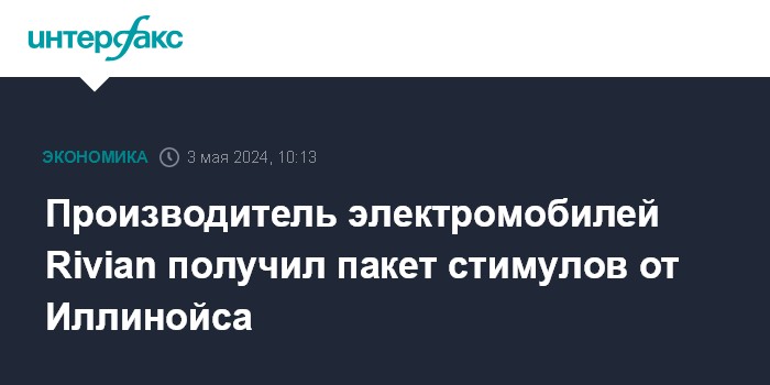 Москва. 3 мая. INTERFAX.RU - Американский производитель электромобилей Rivian Automotive Inc. получил от властей Иллинойса пакет стимулов на сумму $827 млн, который позволит компании расширить производственное предприятие в штате, сообщила пресс-служба компании.
