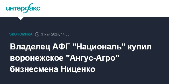 Владелец АФГ "Националь" купил воронежское "Ангус-Агро" бизнесмена Ниценко