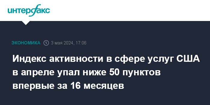 Индекс активности в сфере услуг США в апреле упал ниже 50 пунктов впервые за 16 месяцев