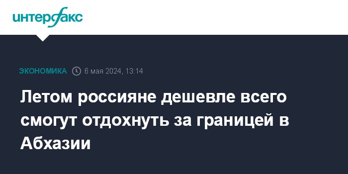 Данные интернет-магазина туров Travelata.ru подтверждают, что Абхазия действительно стала самым доступным зарубежным направлением на лето. Сейчас поездка на неделю на двоих в среднем стоит 146 тысяч рублей, чуть дороже Египет - 210 тысяч На третьем месте оказались ОАЭ - 229 тысяч рублей. Замыкают рейтинг Шри-Ланка и Таиланд со средними чеками 237 тысяч и 252 тысячи рублей соответственно.