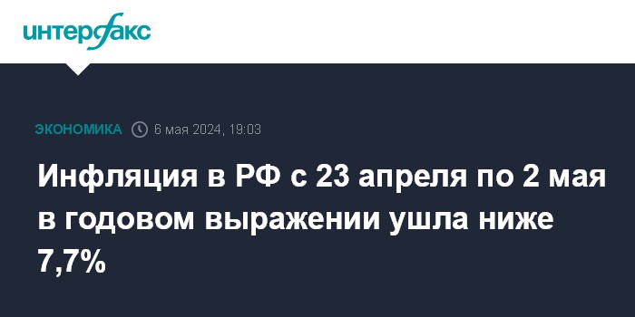 Инфляция в РФ с 23 апреля по 2 мая в годовом выражении ушла ниже 7,7%