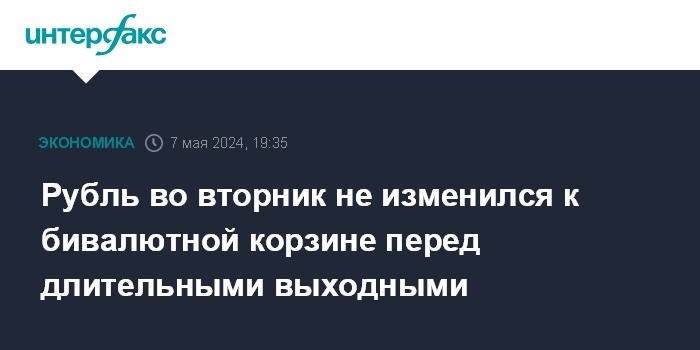 Рубль во вторник не изменился к бивалютной корзине перед длительными выходными