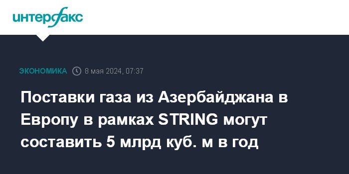 Поставки газа из Азербайджана в Европу в рамках STRING могут составить 5 млрд куб. м в год