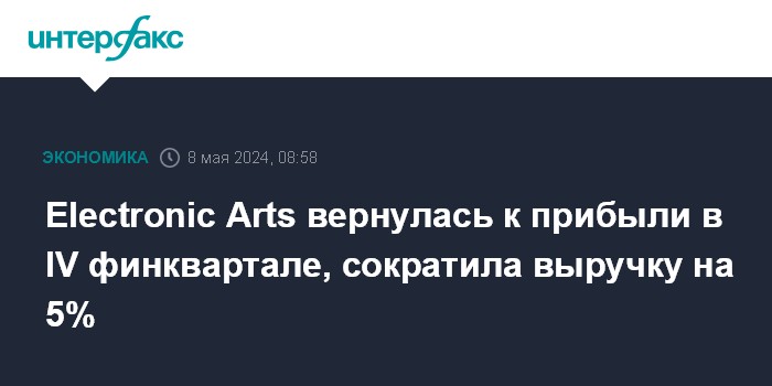 Москва. 8 мая. INTERFAX.RU - Американская Electronic Arts, один из ведущих разработчиков компьютерных игр в мире, получила чистую прибыль в четвертом квартале 2024 финансового года, однако сократила выручку.