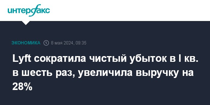 Москва. 8 мая. INTERFAX.RU - Американский сервис заказа такси Lyft Inc. сократил чистый убыток в первом квартале 2024 года в шесть раз, увеличив выручку на 28%.