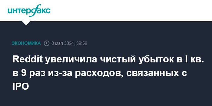 Москва. 8 мая. INTERFAX.RU - Reddit Inc., владелец одноименного интернет-портала, увеличила чистый убыток в первом квартале 2024 года в 9 раз из-за единовременных расходов, связанных с проведением IPO, при этом выручка компании подскочила на 48%.