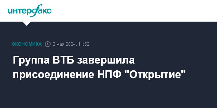 Группа ВТБ завершила присоединение НПФ "Открытие"