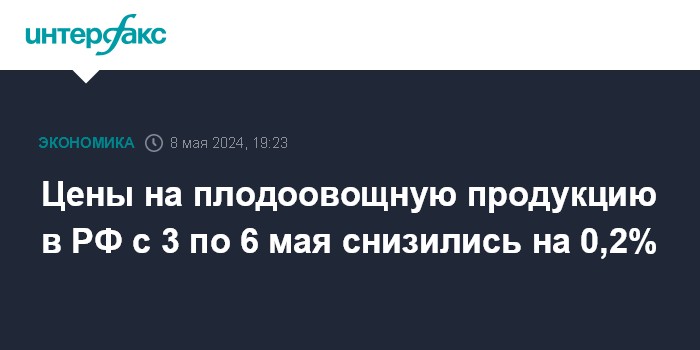 Цены на плодоовощную продукцию в РФ с 3 по 6 мая снизились на 0,2%