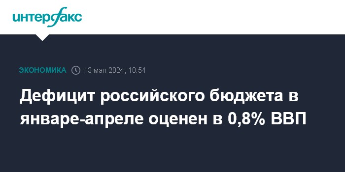 Дефицит российского бюджета в январе-апреле оценен в 0,8% ВВП
