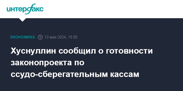 Хуснуллин сообщил о готовности законопроекта по ссудо-сберегательным кассам
