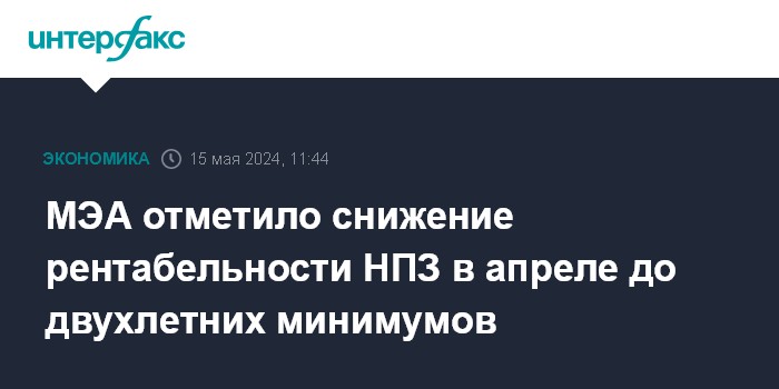 МЭА отметило снижение рентабельности НПЗ в апреле до двухлетних минимумов