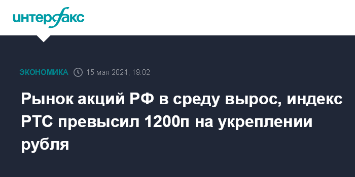 Рынок акций РФ в среду вырос, индекс РТС превысил 1200п на укреплении рубля