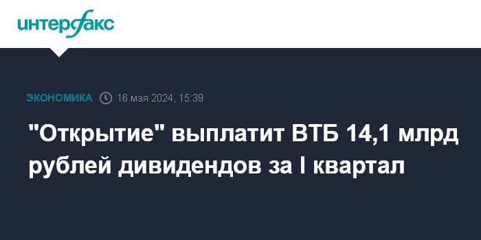 "Открытие" выплатит ВТБ 14,1 млрд рублей дивидендов за I квартал