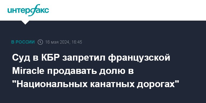 Суд в КБР запретил французской Miracle продавать долю в "Национальных канатных дорогах"