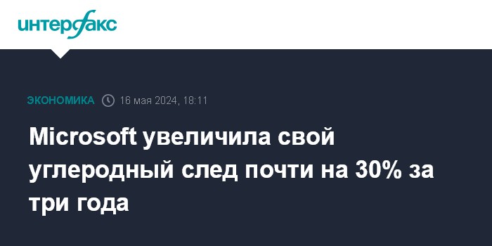 Москва. 16 мая. INTERFAX.RU - Американская Microsoft Corp. увеличила свой углеродный след за последние три года почти на 30%, что в значительной степени было обусловлено строительством центров обработки данных (ЦОД), на которых работают системы искусственного интеллекта и облачных вычислений.