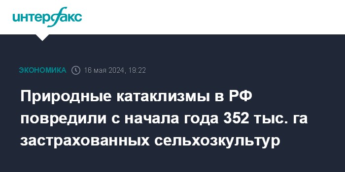 Природные катаклизмы в РФ повредили с начала года 352 тыс. га застрахованных сельхозкультур