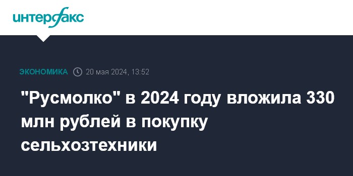 "Русмолко" в 2024 году вложила 330 млн рублей в покупку сельхозтехники