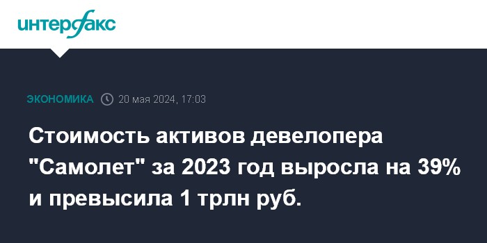 Стоимость активов девелопера "Самолет" за 2023 год выросла на 39% и превысила 1 трлн руб.