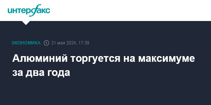 Москва. 21 мая. INTERFAX.RU - Алюминий дорожает на торгах во вторник и торгуется на максимуме за два года, сообщает Trading Economics.