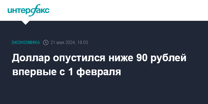 Доллар опустился ниже 90 рублей впервые с 1 февраля