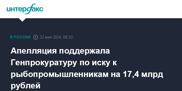 Апелляция поддержала Генпрокуратуру по иску к рыбопромышленникам на 17,4 млрд рублей