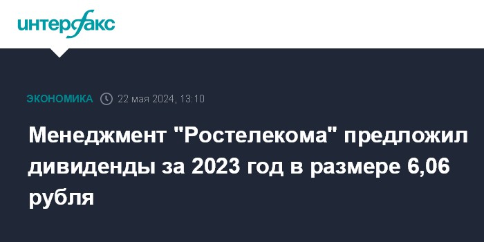 Менеджмент "Ростелекома" предложил дивиденды за 2023 год в размере 6,06 рубля