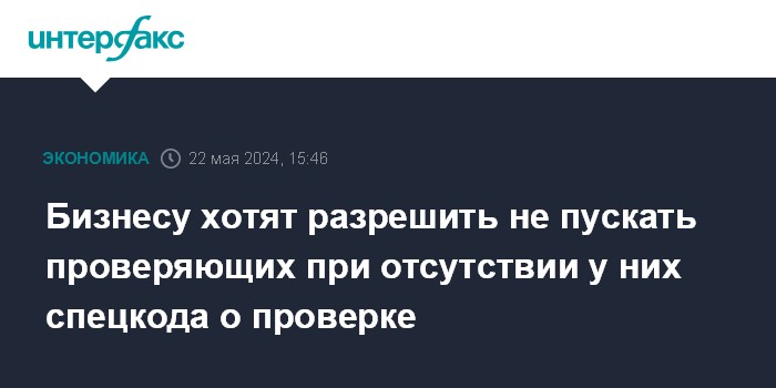 Бизнесу хотят разрешить не пускать проверяющих при отсутствии у них спецкода о проверке