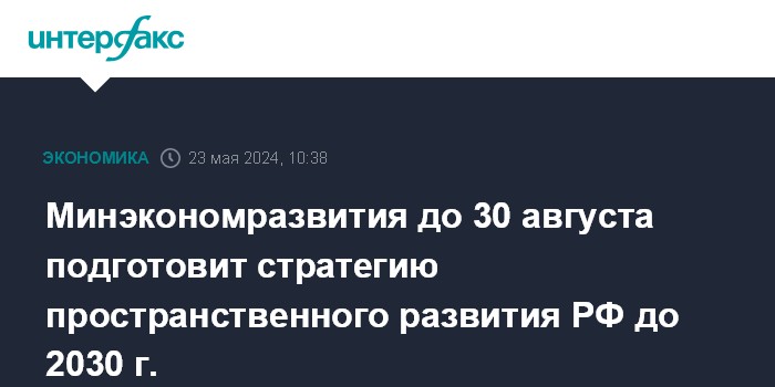 Москва. 23 мая. INTERFAX.RU - Премьер-министр РФ Михаил Мишустин поручил Минэкономразвития совместно с ведомствами до 30 августа подготовить и внести в правительство проект обновленной стратегии пространственного развития России на период до 2030 года с прогнозом до 2036 года. Поручения по итогам стратегической сессии о стратегии пространственного развития России опубликованы на сайте правительства.