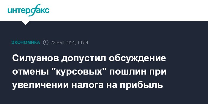 Москва. 23 мая. INTERFAX.RU - Правительство РФ готово рассмотреть отмену экспортных пошлин, привязанных к курсу доллара, с учетом "справедливого" увеличения ставки налога на прибыль, заявил в четверг министр финансов РФ Антон Силуанов.