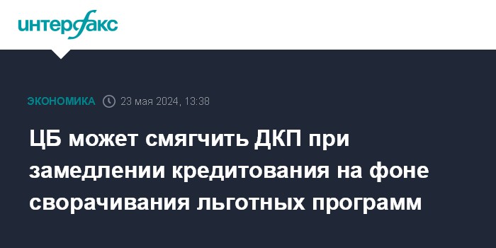 ЦБ может смягчить ДКП при замедлении кредитования на фоне сворачивания льготных программ