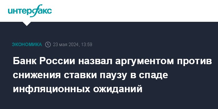 Банк России назвал аргументом против снижения ставки паузу в спаде инфляционных ожиданий