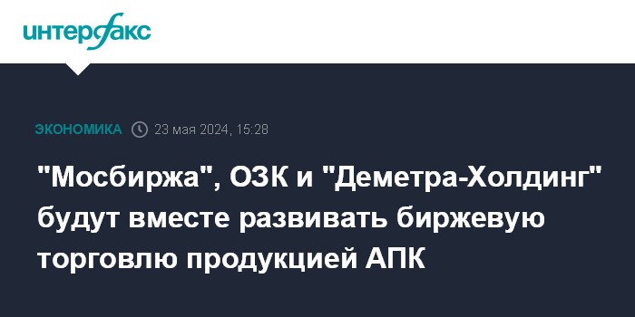"Мосбиржа", ОЗК и "Деметра-Холдинг" будут вместе развивать биржевую торговлю продукцией АПК