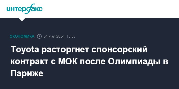 Toyota расторгнет спонсорский контракт с МОК после Олимпиады в Париже