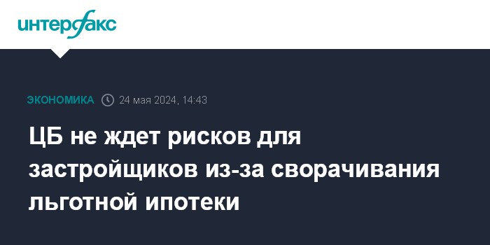ЦБ не ждет рисков для застройщиков из-за сворачивания льготной ипотеки