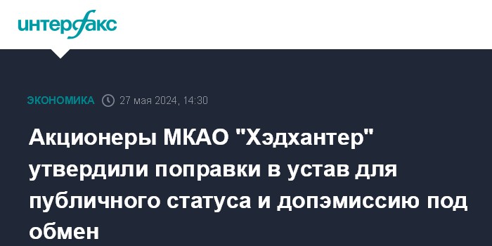 Акционеры МКАО "Хэдхантер" утвердили поправки в устав для публичного статуса и допэмиссию под обмен