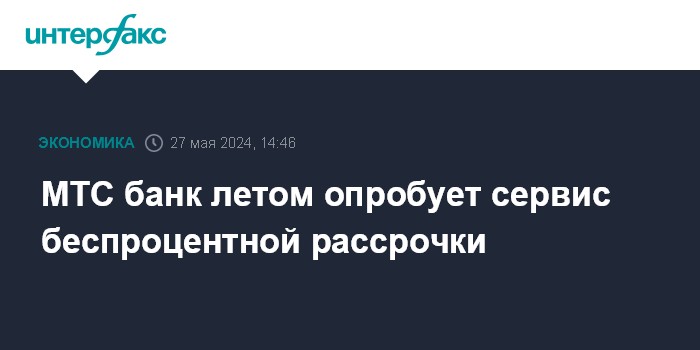 Москва. 27 мая. INTERFAX.RU - МТС банк планирует летом начать пилотирование продукта в сегменте беспроцентной рассрочки - BNPL (buy now pay later), его полномасштабный запуск ожидается в сентябре, сказал председатель правления кредитной организации Илья Филатов в ходе конференц-звонка.