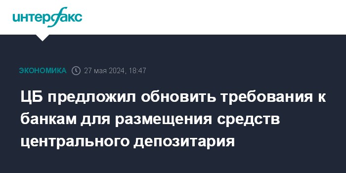 ЦБ предложил обновить требования к банкам для размещения средств центрального депозитария