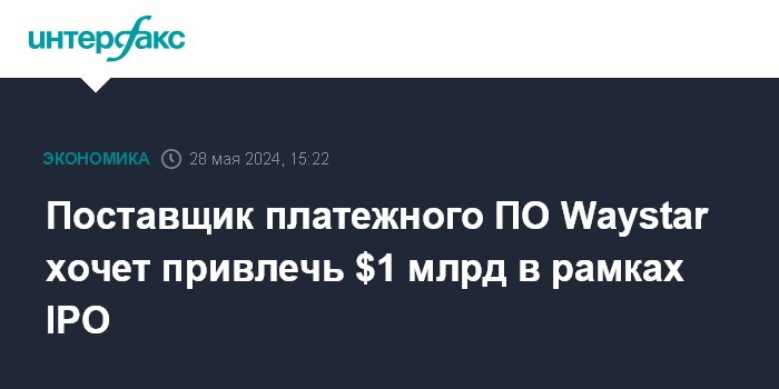 Москва. 28 мая. INTERFAX.RU - Американская Waystar Holding Corp. (бывшая Navicure), поставщик программного обеспечения для платежей в сфере здравоохранения, сообщила, что планирует привлечь около $1 млрд в рамках IPO на бирже Nasdaq.