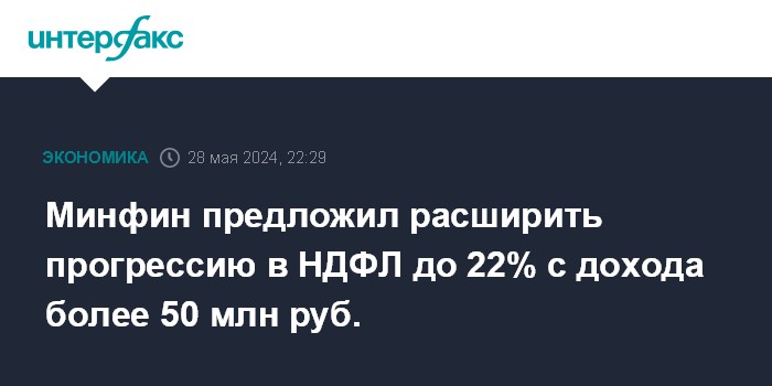 Минфин предложил расширить прогрессию в НДФЛ до 22% с дохода более 50 млн руб.