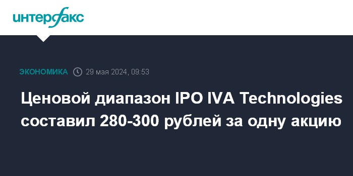 Ценовой диапазон IPO IVA Technologies составил 280-300 рублей за одну акцию