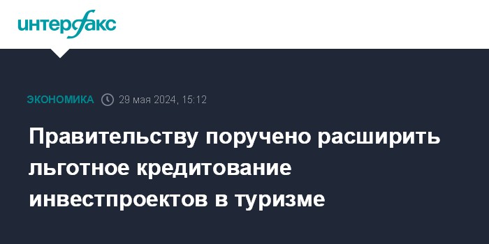 Правительству поручено расширить льготное кредитование инвестпроектов в туризме