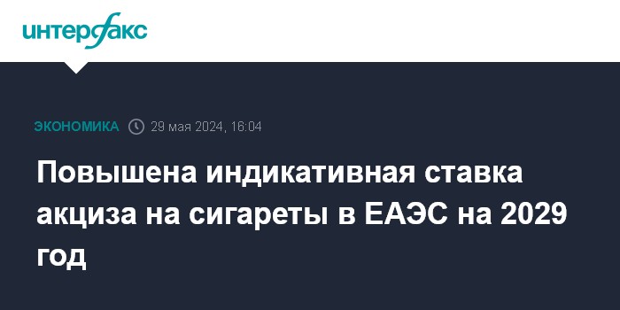 Повышена индикативная ставка акциза на сигареты в ЕАЭС на 2029 год