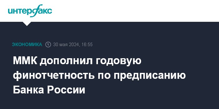 Москва. 30 мая. INTERFAX.RU - "Магнитогорский металлургический комбинат" дополнил консолидированную финансовую отчетность за 2023 год по предписанию Банка России.