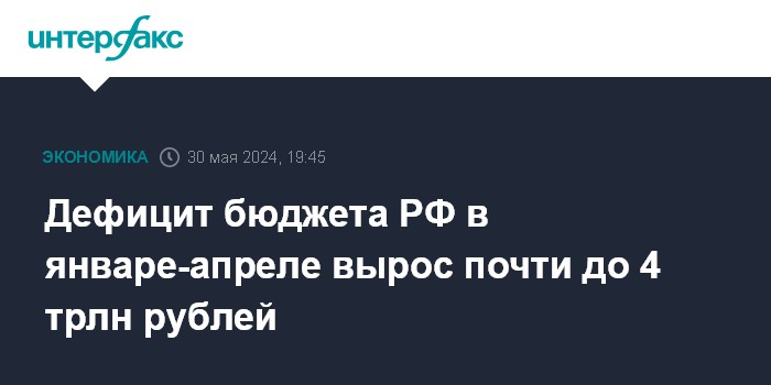 Дефицит бюджета РФ в январе-апреле вырос почти до 4 трлн рублей
